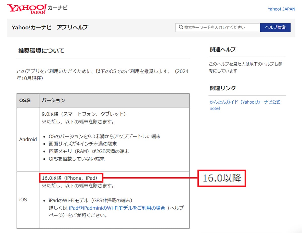 ●Yahoo!カーナビ「推奨環境について」は→こちら